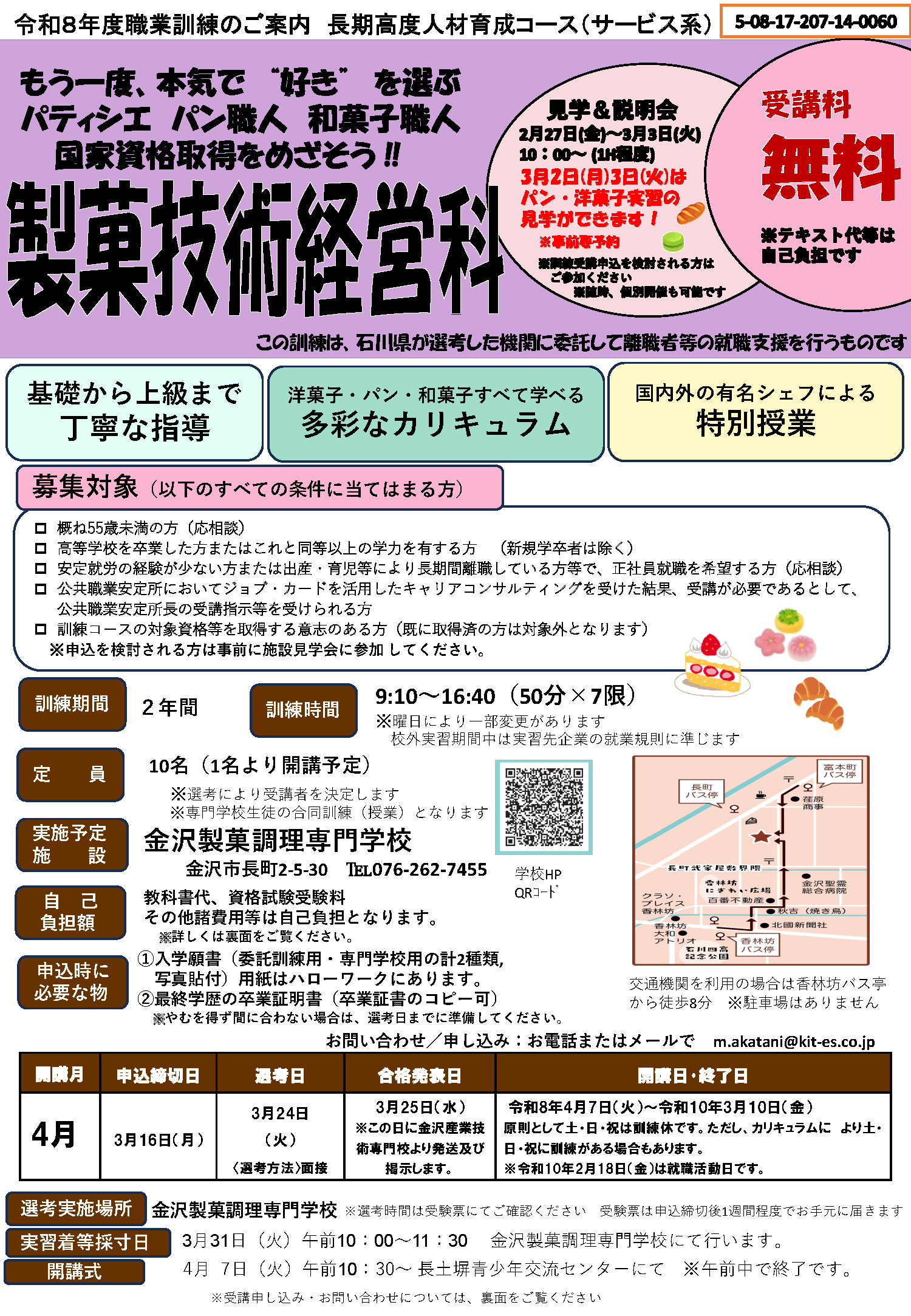 この訓練は、現在離職中、または就職活動している⽅、アルバイト等の⽅が対象です。国の補助により授業料が免除されます。