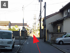 「元車交差点」(富本町バス停)からの道案内です。まず、元車交差点を片町方面に進みます。